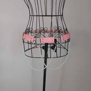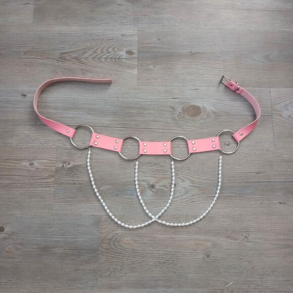 Y2K Style Pink Vegan Leather O-Ring Pearly Belt