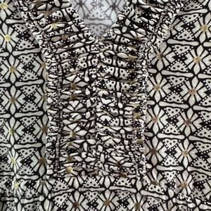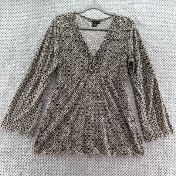 Y2K Suzie in the City Top Womens M Brown Gold Babydoll V-Neck Flared Long Sleeve
