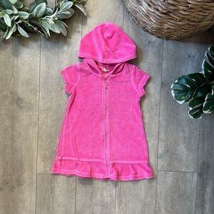 Y2K Circo 2T Girl Pink Hooded Terry Cloth Swim Cover Up Dress Full Zip