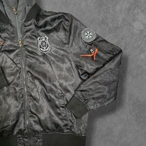 Y2K Swiss Cross Layered Hooded Bomber Jacket with Patches XL Streetwear