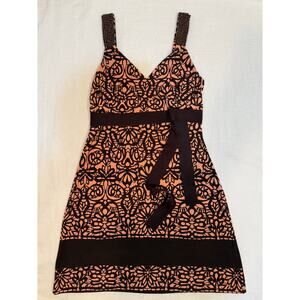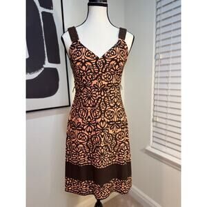 Y2K TAYLOR Size Small Petite Beaded Strap Dress – Brown Floral / Cantaloupe