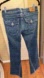 Excellent condition. Low Rise. Distressed. Twisted stitch Flare. Dark Wash Jeans. Back flap pockets with original button closures.