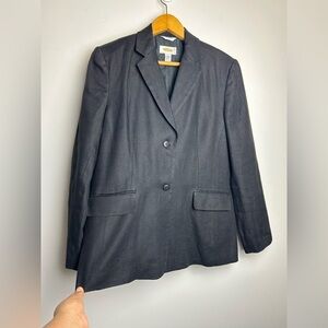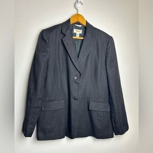 Y2K Talbots Blazer Wome 12P 100% Irish Linen Black Academia Preppy Office Career