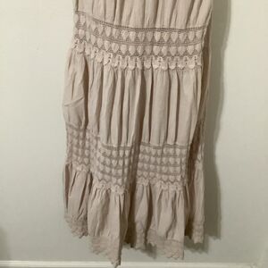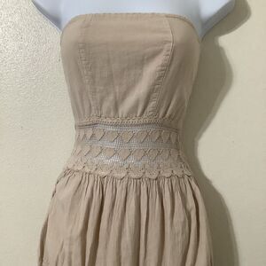 Y2K Tan Strapless Fairycore Boho Mori Girl Crochet Detail Fairy Babydoll Dress S
