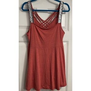 Y2K Tank Top 1X Coral Pink Sequin Trim Festival Babydoll Rave Concert Flowy
