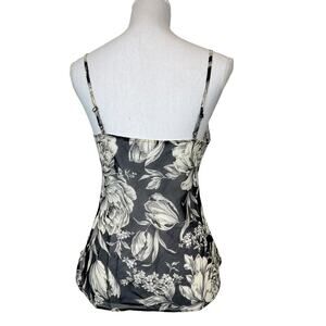 Vintage y2k early 2000s style, cute feminine bow in the center, adjustable straps, floral print, black and cream. Cute for a casual day with low rise denim, or going out with a black mini skirt and kitten heels!