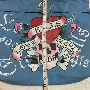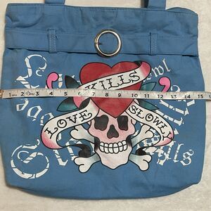 Y2K Tattoo Graphic Tote Bag Skull Heart Love Kills Slowly Emo Punk Rocker