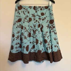 Y2K Teal and Brown Floral Skirt with Embroidered Eyelets size 6 Merona