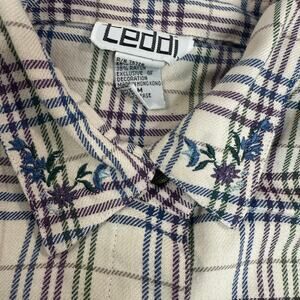 Y2K Teddi Plaid Flannel Button Shirt Women’s Medium Roll Tab Sleeves