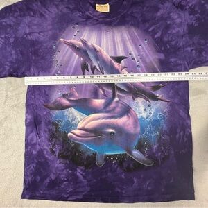 Y2K The Mountain Dolphins T-Shirt XL Purple Tie Dye Ocean Tee Vintage 2003 EUC