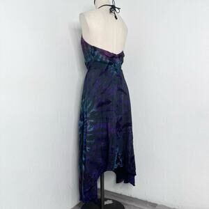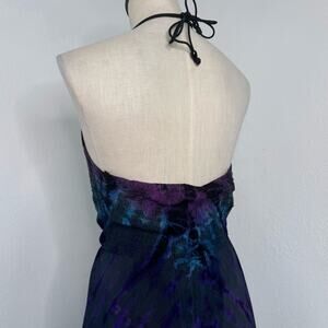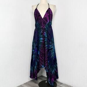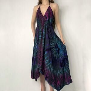 Y2K Tie Dye Halter Midi Dress Embroidery Fairycore Handkerchief Hem, Marked Free Size Best fits Medium-Large, Good Condition