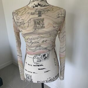Y2K Tie Dye Mesh Long Sleeve Crop Top Size S VTG Forever 21