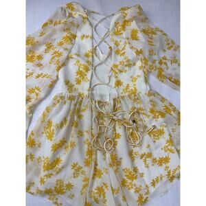 Y2K Tie-Back Show Po Yellow Floral Print Romper Jumpsuit Australia Yellow Small