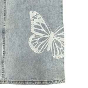 Y2K Tinseltown Butterfly Print Light Wash High Waist Wide Leg Jeans