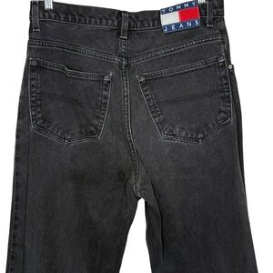 Y2K Tommy High Rise Black Jeans Cotton Size 32 X 32 Flag Logo Patch Spellout