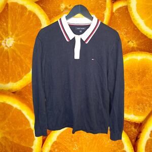 Y2K Tommy Hilfiger Classic Blue with White Red Long Sleeve Polo Size Large