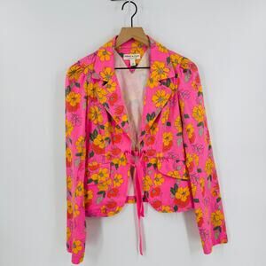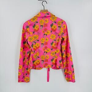 Y2K Tommy Hilfiger Jeans Floral Blazer Pink Yellow Jacket Retro 2000s Women’s L