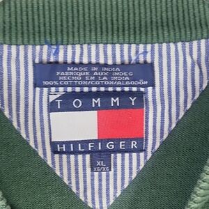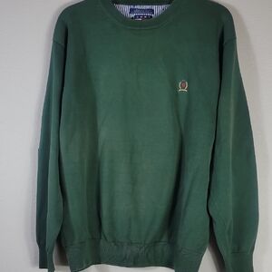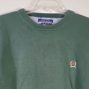 Y2K Tommy Hilfiger Men Crewneck Sweater Pullover Size XL Green Logo Jumper Prepp