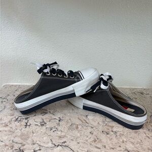 Y2K Tommy Hilfiger Navy and White Women's Slip On Sneakers