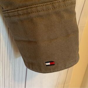 Description: Tommy Hilfiger Olive green army style jacket with a button down closure