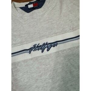 Y2K Tommy Hilfiger Spell Out Shirt Heather Gray Embroidered Vintage Mens Medium