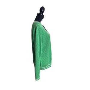Y2K Tommy Hilfiger Women's Parrot Green V-Neck Varsity Sweater 1X