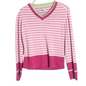 Y2K Tommy Hilfinger Cropped Preppy Tight Knit Sweater Pink Women's Size L