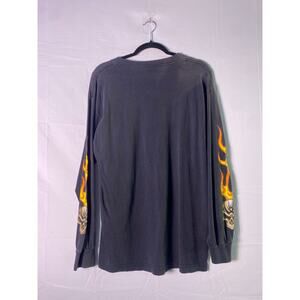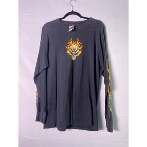 Y2K Top Heavy Black Long Sleeve Shirt Flaming Tribal Skull Fire Goth Shirt Large