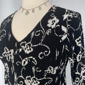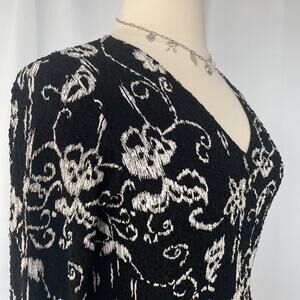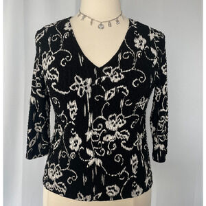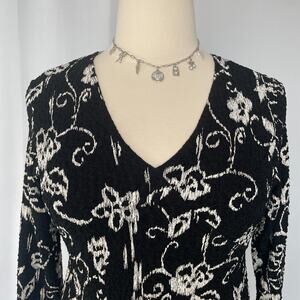 Y2K Top Size Large Black White Floral Casual Stretch Fairy Grunge Whimsigoth