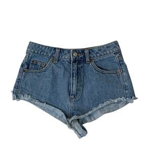 Y2K Jean Shorts Size 4 Topshop Blue Kiri Cut Off Denim Frayed Hem Daisy Dukes
