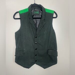 Y2K Tripp NYC black green pin striped men’s vest size small skull buttons goth