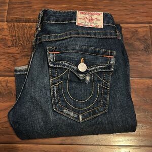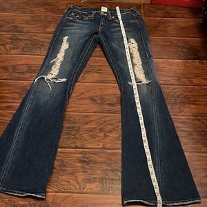 Y2K True Religion Distressed Ripped Holes Flare Jeans, size 27. Please note; has signs of wear.