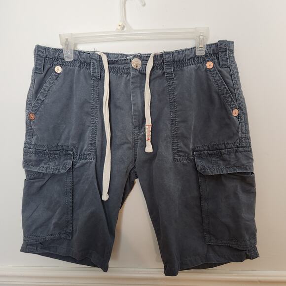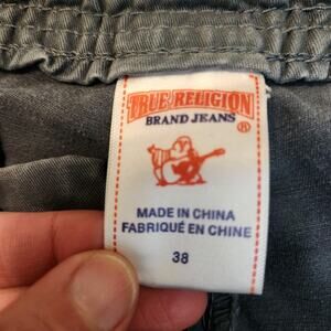 Y2K True Religion Shorts Size 38 Mens Cargo Grunge Skater Gray 11.5" Casual 00s