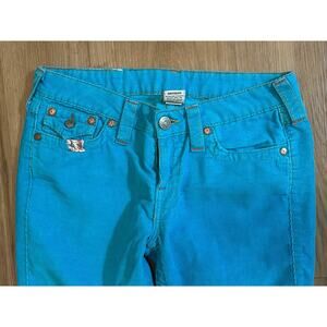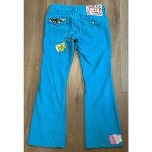 Y2K True Religion Women's Woodstock Embellished Patch Distressed Flare Corduroy