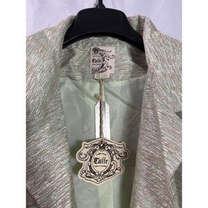 Y2K Tulle Womens XL Metallic Green Tan White Tweed Open Front Blazer Jacket New
