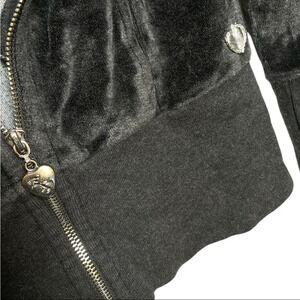 Y2K Twisted Hearts Velour Zip Jacket Women’s Small Gray Rhinestone Heart Bling