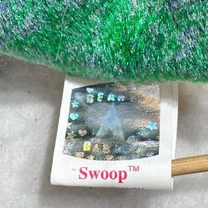 Ty Beanie Baby Swoop, the Pterodactyl. Very cool effect with the eyes that looks better in person than the photos. The color on the wings is an iridescent blue-green that shimmers. The head measures 6.25 inches from end to end. The wing span is approx. 14 inches. Birthday is 2/24/2000. New condition. From a collector's estate.