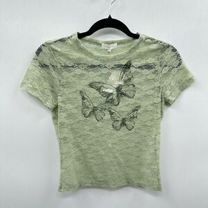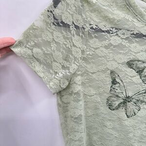 Y2K ULTRA FLIRT Green woman Lace butterfly sheer lightweight boho chic top NWT M
