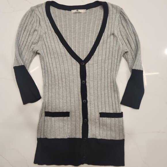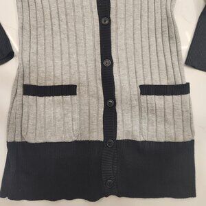 Y2K UNIQUISM Two-Tone Ribbed Sz S Button 3/4 Sleeve Gray Cardigan Light Academia