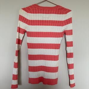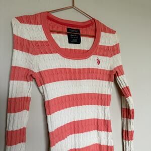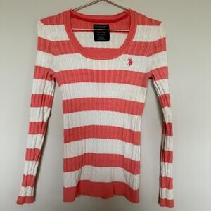Y2K US Polo Assn Womens Sweater M Pink Striped V Neck Cable Knit Preppy 90s