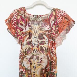 Y2K Unity Top Mesh Paisley Print Crochet Brown Orange Size M Boho Forest Fairy