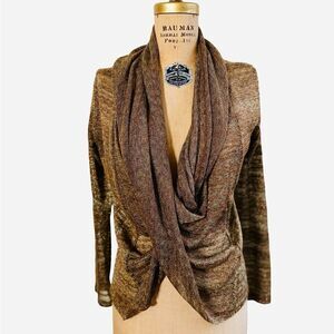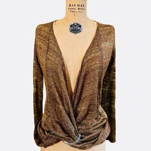Y2K Unyx Brown sweater Twisted front metallic Gold fine knit top size medium