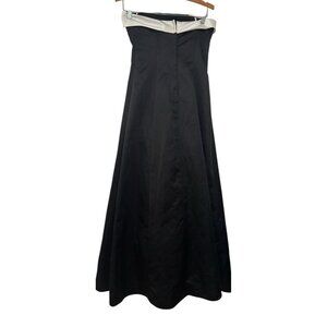 Y2K Urban Girl Nites Black White Satin Long Dress Gown Strapless w/ Shawl Prom. Shawl is reversible- white on one side, black on the other. No size tag, please see all measurements. No stains or holes.
