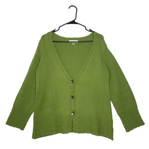 Y2K V Neck Cardigan Sweater Womens S Green Cotton Blend Knit Cottagecore Boho