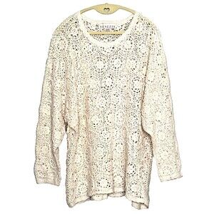 Y2K VENEZIA Floral Crochet Knit Bohemian Sweater Womens 22 24 Cottagecore Cream