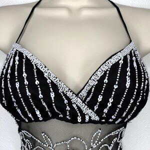 Vtg Y2K VENUS Beaded & Sequined SHEER BACKLESS HALTER Top with Bust Pads & Ties in Back!