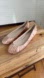 These Vera Wang Lavender Ballet Flats are Made in Italy and constructed in dusty pink satin, leather lining and leather bottom soles. They feature a round toe box, cushioned insole and dainty box pleating through out with a barely there heel. These are timeless, classic, wedding, bridesmaid, gender reveal, feminine, neutral, balletcore, coquette, comfortable evening vibes.