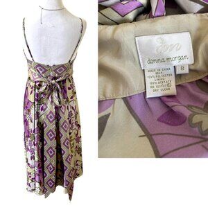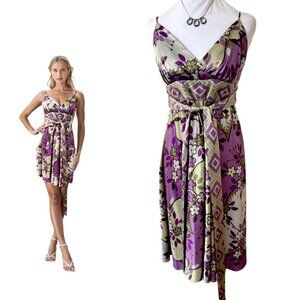 Y2K VINTAGE 00'S BABY DOLL STYLE DONNA MORGAN FLORAL PATTERN WRAP SILKY DRESS 8
