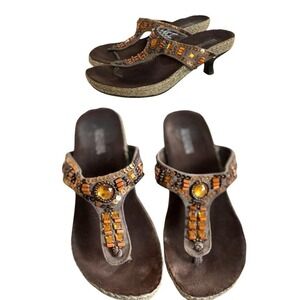 Y2K VINTAGE BEADED KITTEN HEEL KENNETH COLE REACTION SANDALS HEELS 6 1/2