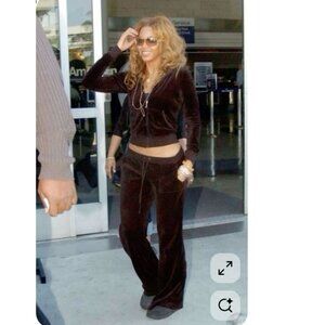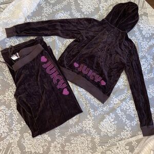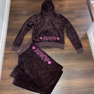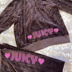 Y2K VINTAGE JUICY COUTURE CHOCOLATE BROWN VELOUR PLUSH TRACKSUIT SET PINK BLING